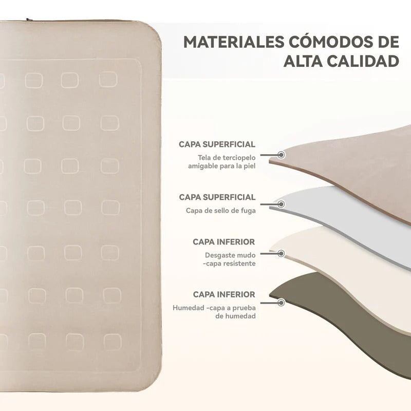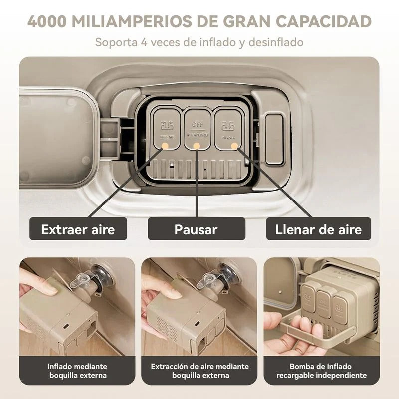 Se infla y desinfla automáticamente, gracias a su bomba eléctrica integrada y recargable.