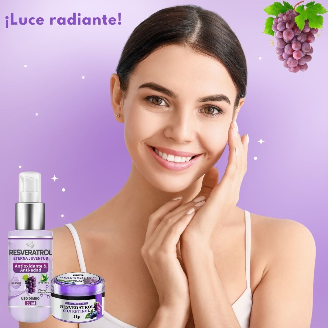 Las propiedades del resveratrol ayudan a reducir los signos de envejecimiento, manteniendo la firmeza y elasticidad de tu piel.