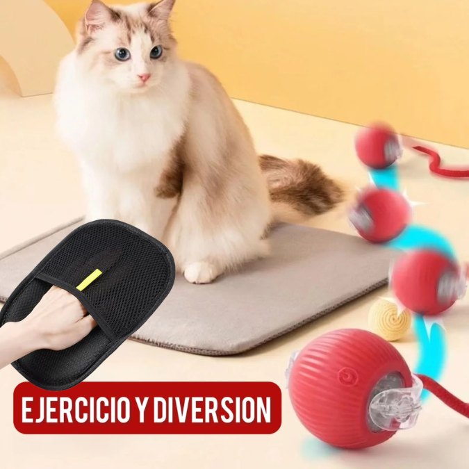 COMBO Pelota Interactiva + Guante Quita Motas | Tu gato feliz, tu casa sin pelos