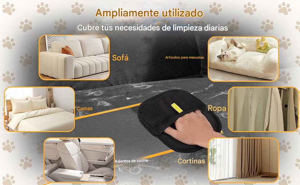 Este guante aprovecha la electricidad estática, al frotar la superficie, atrae y remueve los pelos eficazmente.