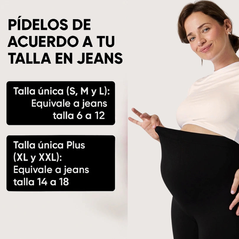 Con pretina ancha de 17 cm y elástica que se adapta a tu cuerpo en cada etapa, sin bajarse ni apretar.